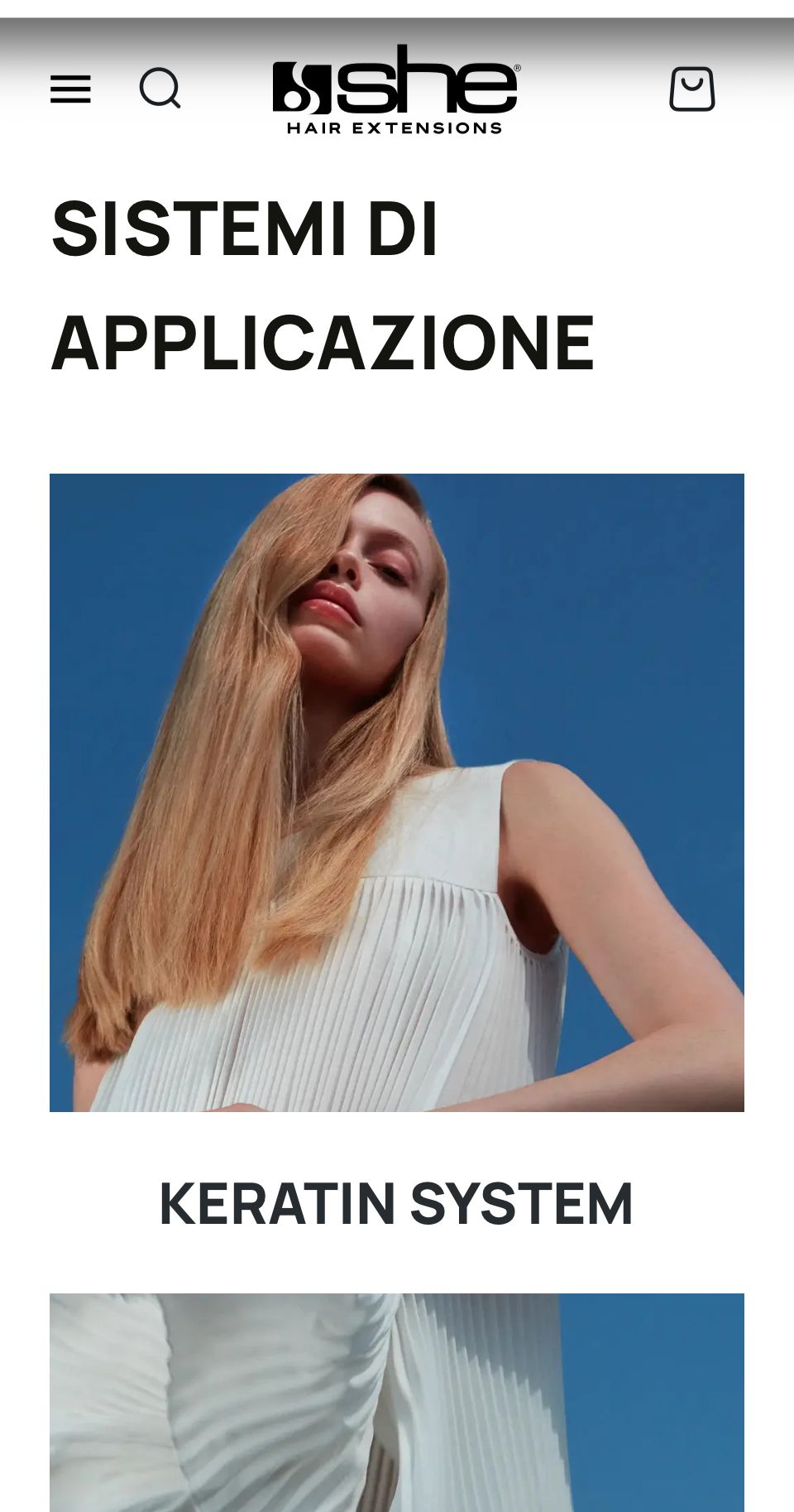 Siamo rivenditori di HAIR EXTENSIONS SHE PROFESSIONALS marchio leader nella produzione di capelli naturali di altissima qualità nel settore del keratin system, dell' extensive system, del weft system e del clip system.